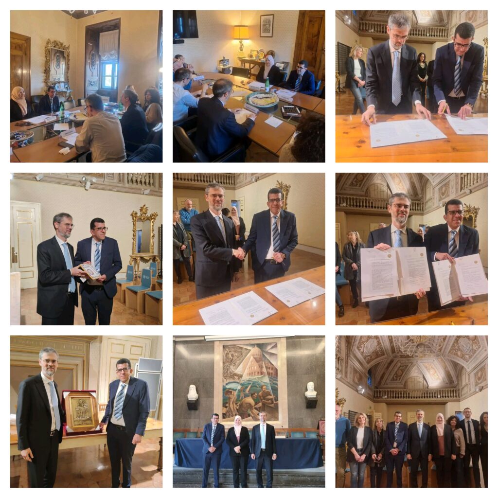 The Rector of Blida 2 University, Professor Bachir Amer, accompanied by the Vice-Rector for External Relations, Professor Safaa Oulad Heddar, paid an official visit to the University for Foreigners of Perugia in Italy, at the invitation of its Rector, Professor Valerio De Cesaris. This visit took place within the framework of renewing the cooperation agreement between the two institutions and strengthening prospects for joint academic partnership.